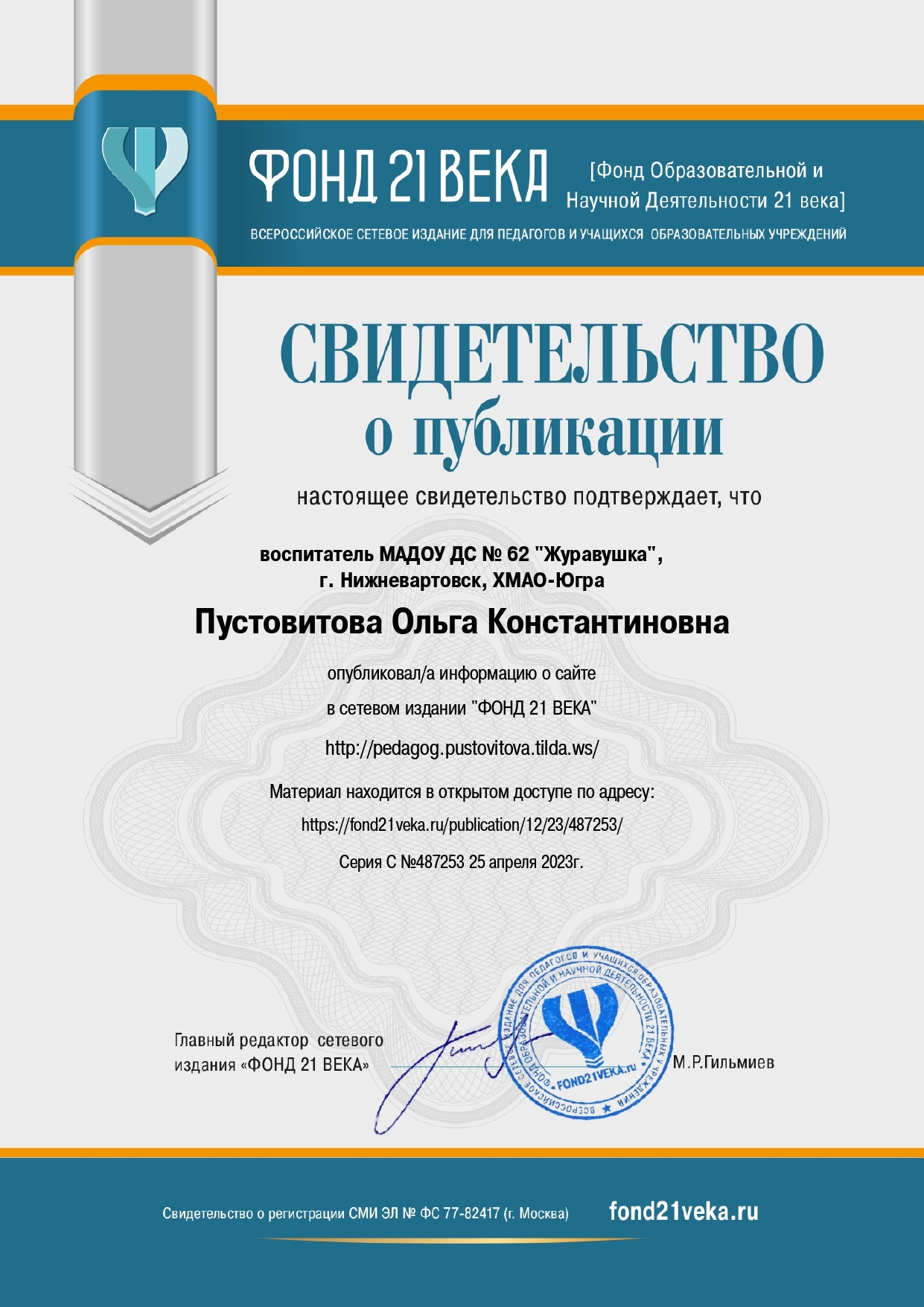 ПЕРСОНАЛЬНЫЙ САЙТ ВОСПИТАТЕЛЯ